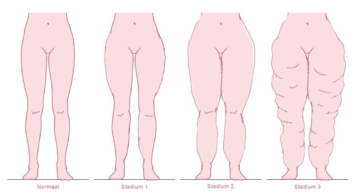 Lipödem är ett tillstånd som ses hos kvinnor. Lipödem uppträder i flera steg. Först börjar den övre delen av benet att anta formen av en pelare, med svullnad av knäna på den övre delen av benen. I avancerade stadier kan det sträcka sig ner till fotleden och underbenet. Senare kan det nå de övre delarna av kroppen.