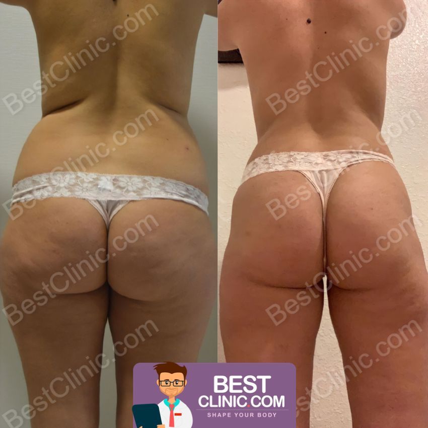 Ingreppet för lipofilling av rumpan tar mellan 2 och 4 timmar. Lipofilling av rumpan utförs vanligtvis under allmän bedövning. Risker och potentiella biverkningar är en nödvändig transfusion, en fet lungemboli och att injicerat fett passerar in i blodomloppet.
